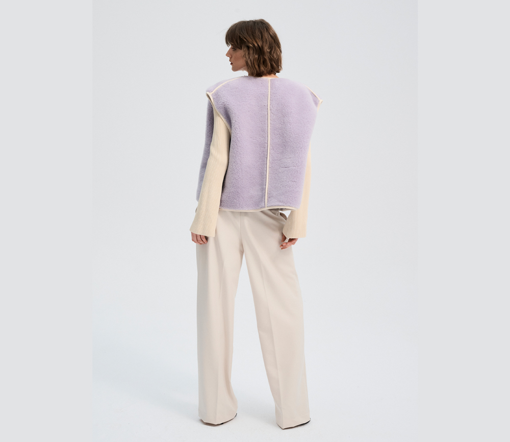 - ULTRALEICHTE WOLLE 100 % Wolle in einem Fleece mit Schaffellstruktur und einer sehr leichten Formel. Der Stoff zeichnet sich durch außergewöhnliche Weichheit und Elastizität aus, wodurch er uns sanft umhüllt. Charakteristisch für dieses Material ist seine schwarze Basis, die die Farbe des verwendeten Wollvlieses intensiv zur Geltung bringt.