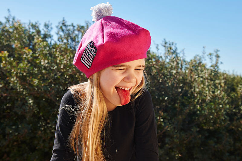 Diese raffinierte Mütze kann aus den unterschiedlichsten Stoffen genäht werden, Hauptsache sie haben etwas Stand und geben der Mütze die entsprechende Form. Wie einfach man eine Bommel herstellen kann erklären wir auch in einem separaten Video.