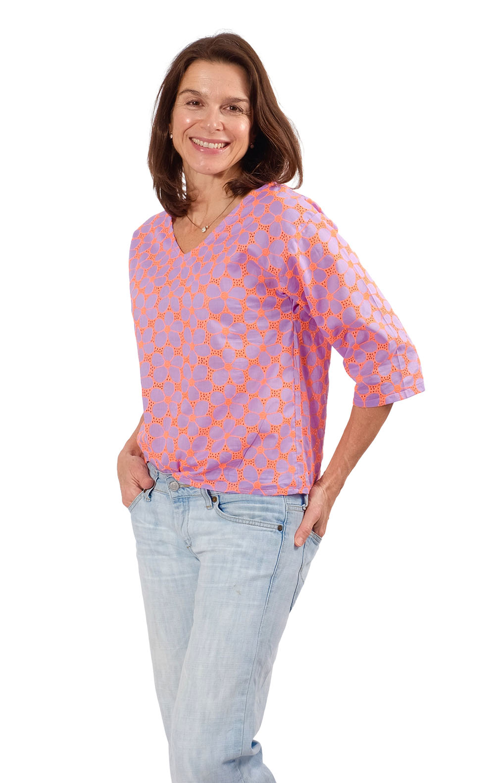 Hochwertiger Baumwollstoff mit Paisleymuster in Spitzenoptik. Ideal für leichte Blusen, Hemden, Hemdkleider, Kleider, Hosen, Röcke und vieles mehr. Schnittmuster Bluse Metta. Ellen, Jacke Nessa, Kleid Santina und Jola zur Inspiration in anderen Musterungen.