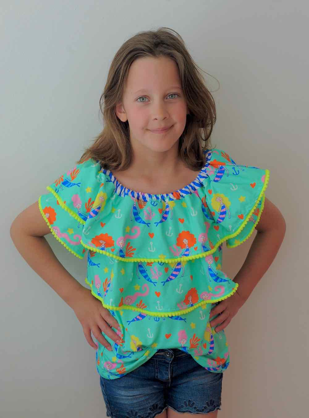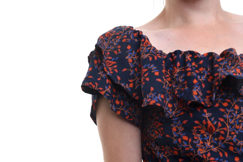 Dies ist eine schöne schulterfreie Bluse mit oder ohne Rüschen. Du kannst die Bluse nämlich in vielen Variante nähen. Ob mit zwei Rüschen, nur mit einer Rüsche oder ganz ohne, sie wird je nach Stoff wird es immer wieder anders aussehen! Die liebe Andrea von @andelinde hat sich die Loki auch kreativ zu einem Kleid abgeändert.