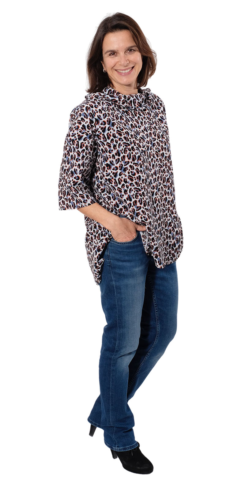 Eine Bluse welche für Anfänger super geeignet ist, ein Teil das durch den Stoff immer wieder anders aussehen wird. Die Bluse besticht durch den extravaganten Kragen und den leger weiten Schnitt. Das Rückenteil besitzt hinten eine Passe mit Kellerfalte. Im Ebook erklären wir auch noch die Variante mit Beleg, so könnt Ihr das Blusenshirt auch ohne Kragen nähen! Wer möchte kann sich den Arm auch ganz einfach verlängern und als Langarm Blusen Shirt nähen. Du kannst es mit Kragen oder mit Kapuze nähen!