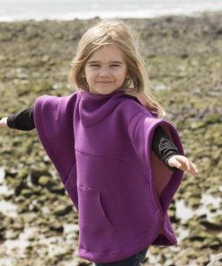 Wir haben in unseren Beispielen den Poncho aus einem Jogging Stoff und einem Romanit Stoff genäht. Sweatshirt und Fleecestoffe sind aber auch ideal dafür.