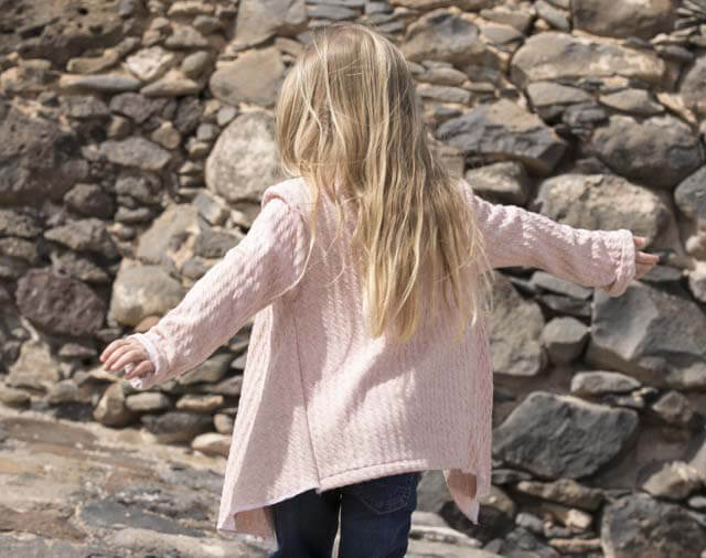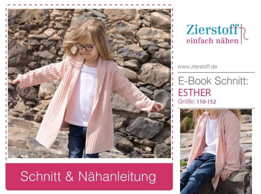 Nähanleitung & Schnitt für eine lässige Jacke mit Schalkragen, Cardigan “Esther, Gr. 110 – 152