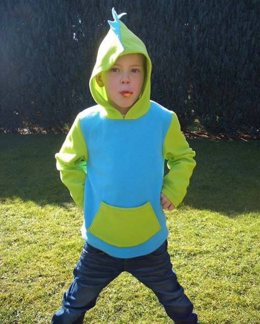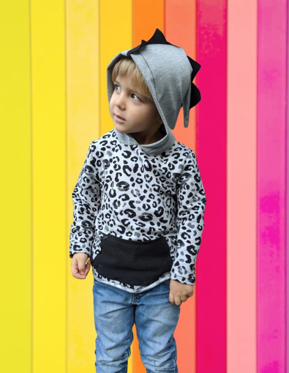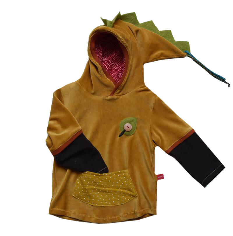 Nähe doch einfach einen Drachenpullover selbst? Für Jungs oder für Mädchen, mit diesem Schnittmuster für das Sweatshirt bist Du gut beraten. Du kannst das Shirt auf viele Arten und Weisen nähen, lasse Dich einfach inspirieren und lebe Deine Kreativität aus. Verwende z.B. verschiedene Stoffe und nähe ein ganz besonderes Einzelstück für Dein Kind. Das Sweatshirt ist einfach und sehr schnell genäht, die aufgesetzte Tasche und die Zacken auf der Kapuze sind optional. Zudem kannst Du das Jersey oder Fleeceshirt mit spitzer oder mit runder Kapuzen nähen, im Schnittmuster sind beide Varianten enthalten.