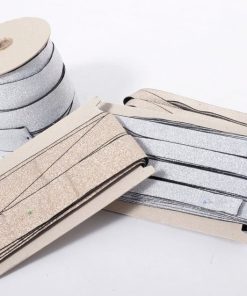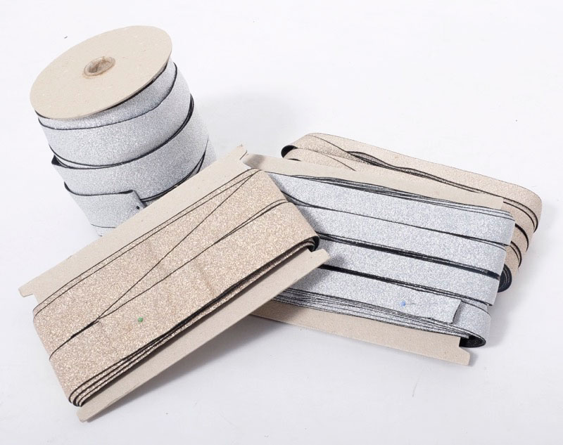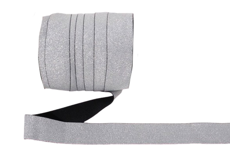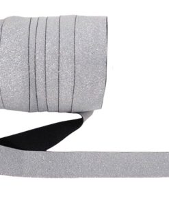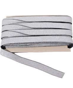 Elastic-Band 20 mm breit – 3 Meter Länge. Glitzerne Lurexstreifen auf weißem Band. Ideal als Zierstreifen oder für Abschlüsse.