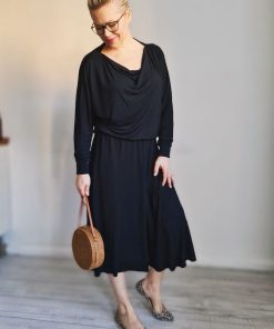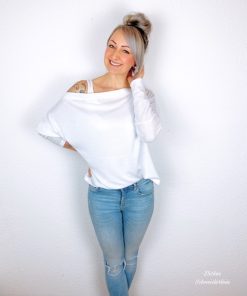 Dieses raffinierte Fledermausshirt ist ein toller Begleiter durch das ganze Jahr. Es kann leger oder chic kombiniert werden und es passt toll zu unserem Rock Lona. Das Shirt kannst Du auf 3 verschiedene Arten variieren. Entweder mit einem geraden Ausschnitt, mit einem Wasserfall oder mit einem Beleg. Es wird immer wieder anders aussehen. Die Nähzeit beträgt hier weniger als 30 Minuten und es ist ein super Nähanfänger Projekt. Ein dazu passendes Nähtutorial haben wir auch noch gedreht.