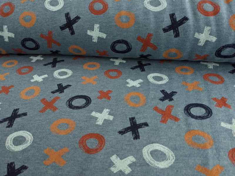 Ein hochwertiger Sommer Sweat Stoff mit X und O´s bedruckt. Ideal für Mützen, Schals, Oberteile, Jacken, Kleider, Röcke und vieles mehr. Die Rückseite ist kuschelig angeraut.