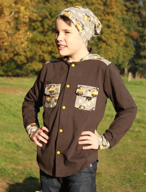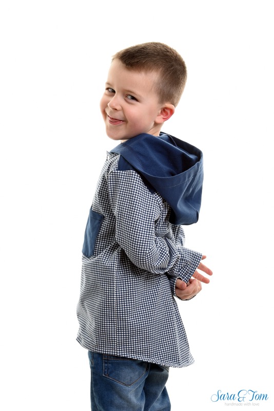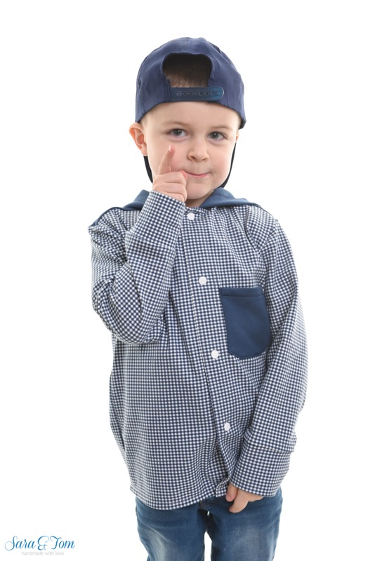 Nähanleitung & Schnitt für ein Hemd / Shirt mit Kapuze, Gr. 62 – 104