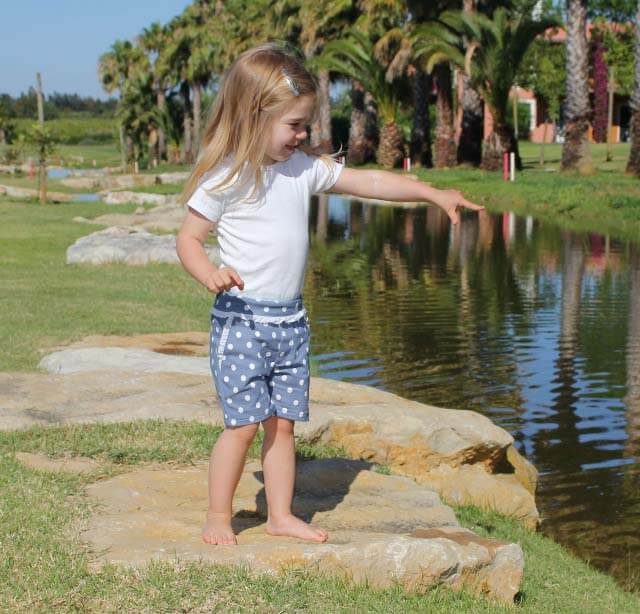 In diesem Schnitt sind zwei Schnitte beinhaltet. Ein Schnitt für blutige Anfänger mit Bündchenverarbeitung. Ein weiterer Schnitt für Fortgeschrittene mit einer Fake RV Verarbeitung. Wenn Du sie einmal genäht hast, wirst Du sie sicher noch ganz oft nähen! Die Hose sieht durch unterschiedliche Stoffe und Verarbeitungsmöglichkeiten auch immer wieder anders aus. Du kannst die Hose in kurz oder in lang nähen, dadurch ist sie das ganze Jahr über einsetzbar. (Wer diese Hose gerne für sehr schmale Kinder nähen möchte, kann sich das Modell Clara einmal anschauen…)