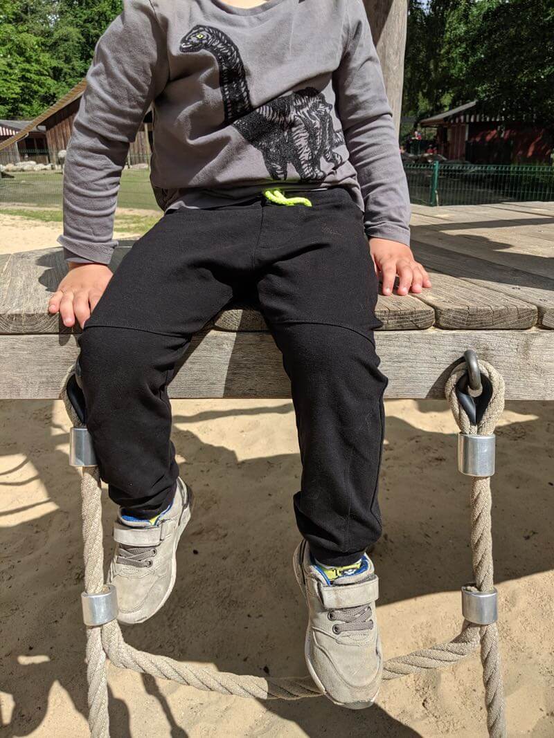 Ein 3 cm breites Gummiband für die Taille, Länge am besten direkt am Kind