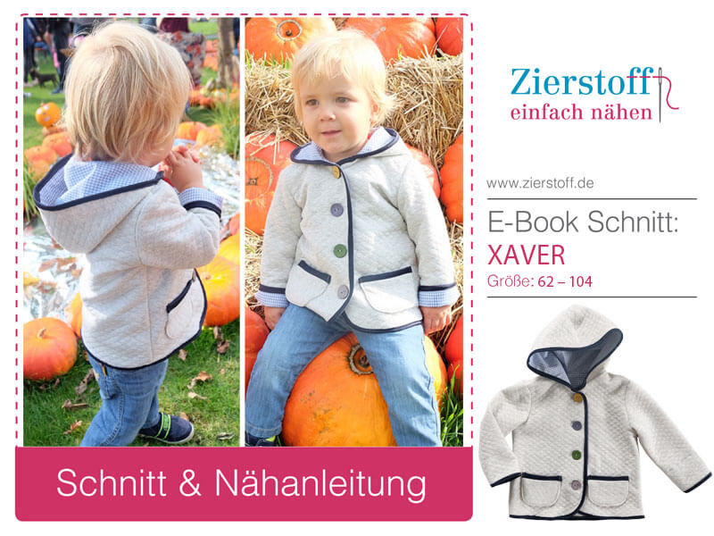 Nähanleitung & Schnittmuster Kinderjacke, Trachtenjacke, Fleece Jacke “Xaver”, Gr. 62 – 104