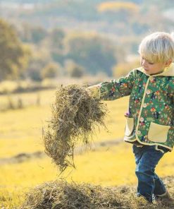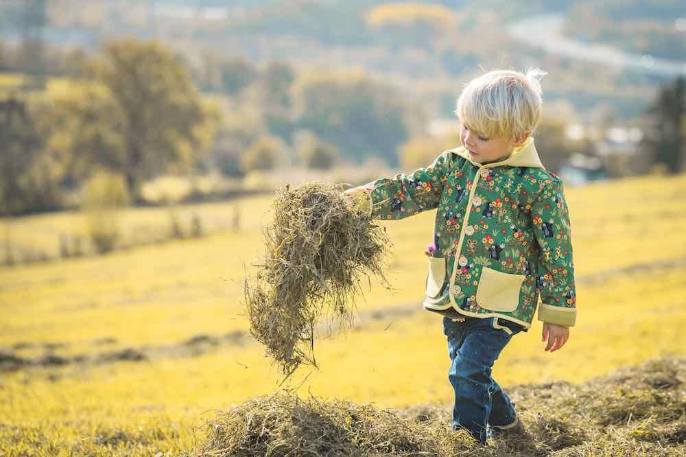 Diese hübsche Kinderjacke kann grundsätzlich aus allen weich fallenden Stoffen genäht werden. Ob Ihr sie im Trachtenlook oder ganz normal aus Softshell näht, die Jacke ist ein wunderbarer Begleiter durch das ganze Jahr. Das Modell wird ohne Futter verarbeitet und rundherum mit einem Schrägband verarbeitet. Bei elastischen Waffelstoffen und mit einem elastischen Schrägband wie hier abgebildet, finden wir das Modell für blutige Anfänger nicht geeignet. Etwas Näherfahrung solltest Du dann schon haben.