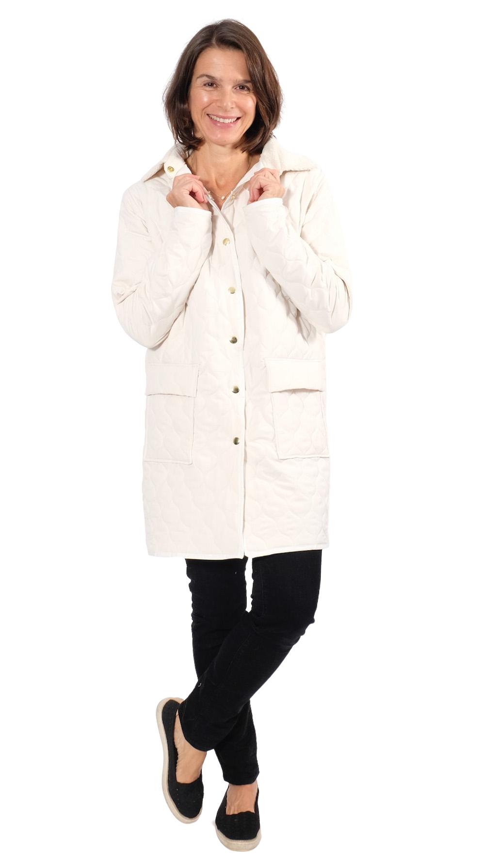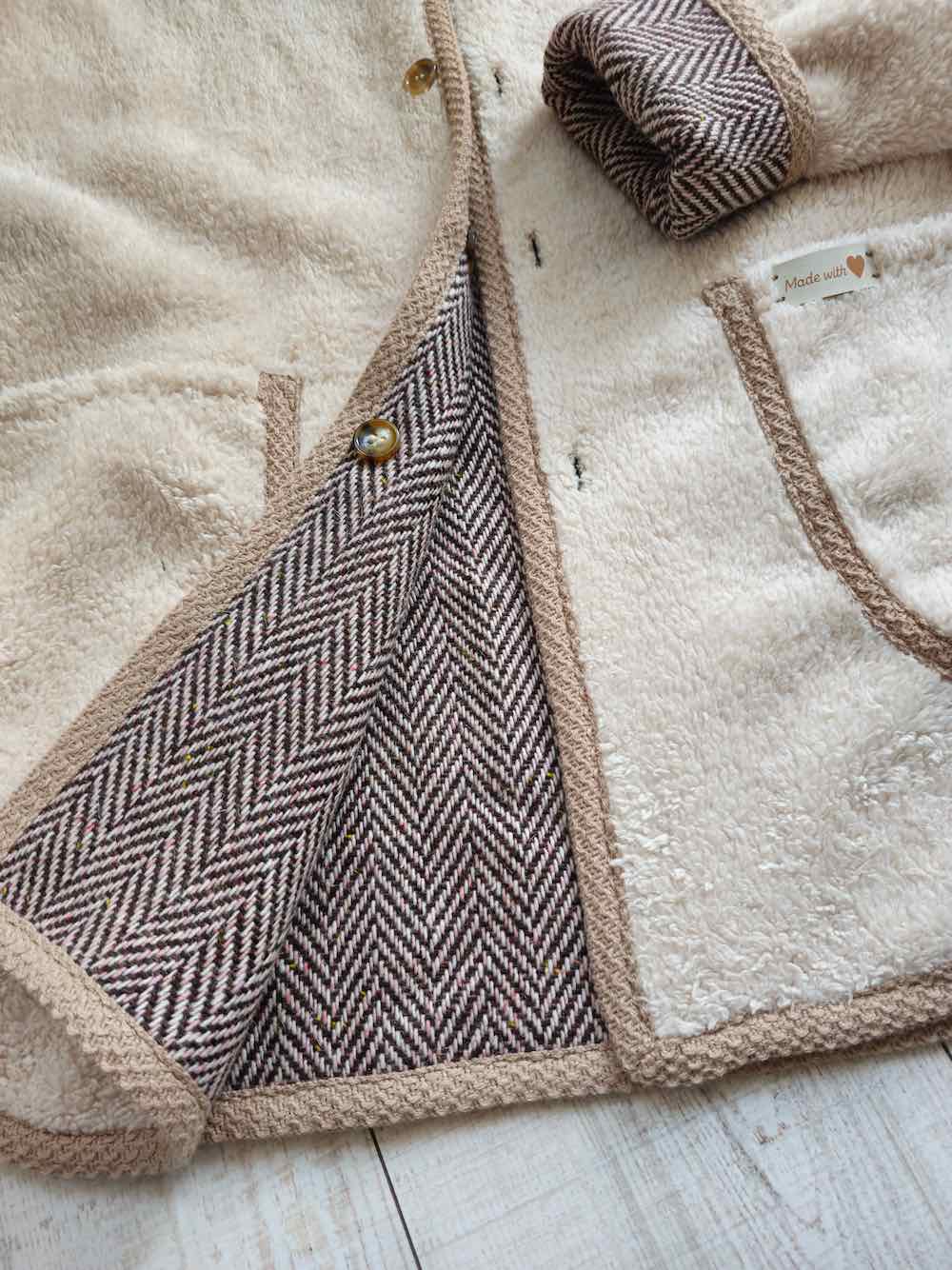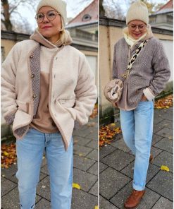 Diese Jacke ist ein toller Allrounder da Ihr sie mit vielen Variationsmöglichkeiten nähen könnt. Entweder mit oder ohne Kragen, mit Schrägband oder mit Belegen. Es ist auch möglich die Jacke als Wendejacke zu verarbeiten. Unser Muff Dolores schaut hier auch sehr hübsch dazu aus! Ihr könnt auch in die vordere Mitte einen RV einarbeiten, hier gibt es viele tolle Möglichkeiten!