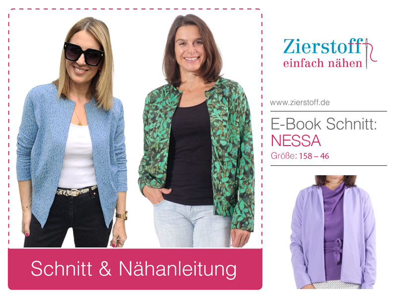 Nähanleitung & Schnitt für eine kurze, ungefütterte Jacke “NESSA”, Gr. 158 – Damengr. 56