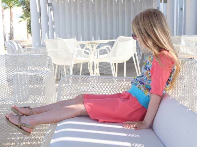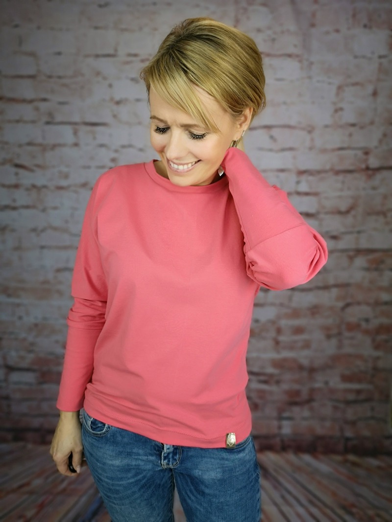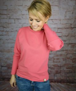 Ein hochwertiger Single-Jersey aus Baumwolle/Elasthan in einem kräftigen Koralleton. Abbildung Shirt Maren und Doro. Im Nähbuch “Nähzeit” haben wir den Artikel auch verwendet. Abbildung Shirt Britta in Kombination mit Marsala und Mandarine.