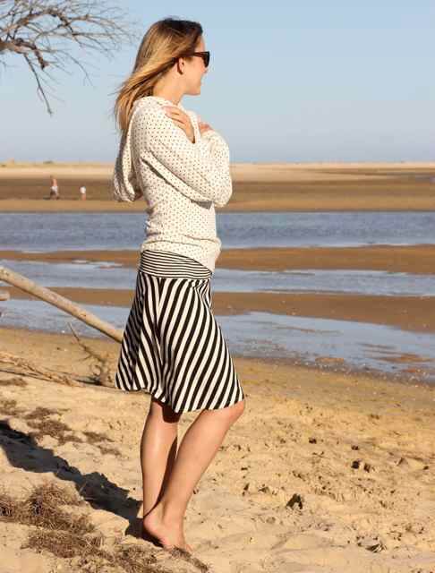Du möchtest einen super einfachen Rock für Dein Töchterchen oder für Dich selber zaubern? Dann liegst Du mit diesem Modell genau richtig. Der angeschnittene Bund zaubert eine hübsche Silhouette und ist für viele Figuren sehr gut geeignet. Wir haben ihn schon aus dickeren Materialien für den Winter genäht und lieben diesen Schnitt…-)