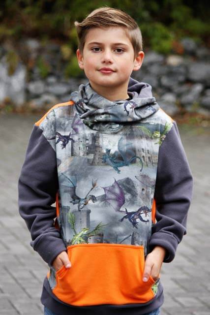 Nähanleitung & Schnitt Kapuzensweatshirt “DAVID”, Gr. 110 – 152
