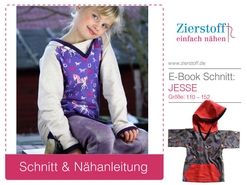 Nähanleitung & Schnitt unisex Kapuzensweatshirt “Jesse”, Gr. 110 – 152