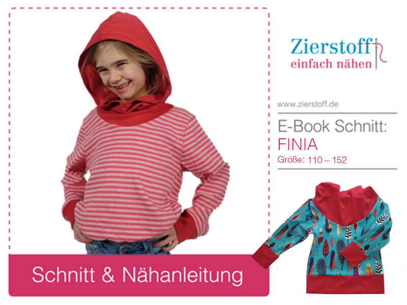 Nähanleitung & Schnitt Kapuzensweatshirt “FINIA”, Gr. 110 – 152