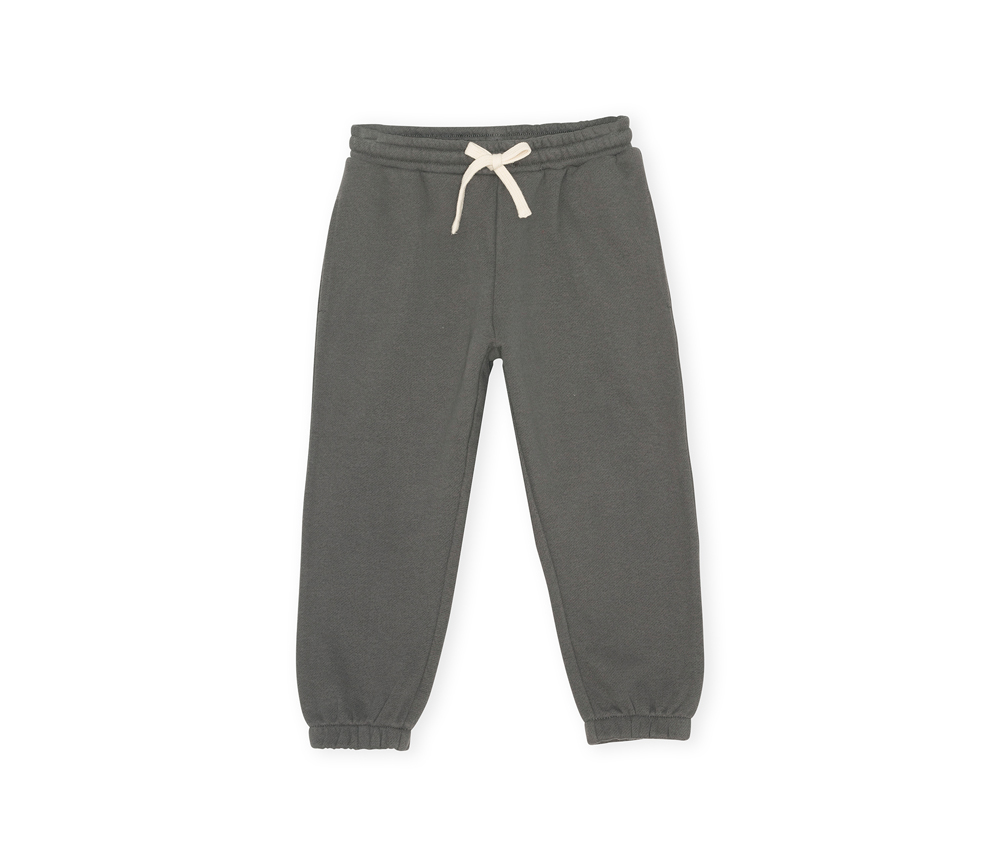 Coole Sweatpants aus reiner Bio-Baumwolle von Konges Sløjd. Die Hose hat einen elastischen Taillenbund mit Kordel sowie elastische Fußbündchen und eine Tasche an der Vorderseite sowie eine Tasche auf der Rückseite.