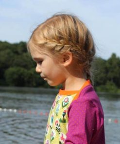 Dieses Shirt ist vielseitig einsetzbar. Ob mit langem oder kurzem Arm, ob mit Bündchen oder ohne, sogar als Kleid sieht es abgewandelt sehr toll aus. Wer möchte, der kann sogar einen doppelten Arm einnähen. Das Sweatshirt ist einfach und sehr schnell genäht. Wer ein schmal geschnittenes Shirt oder ein tailliertes Kleid mit diesem Ausschnitt nähen möchte, der sollte sich den Schnitt “Rhea” einmal anschauen.