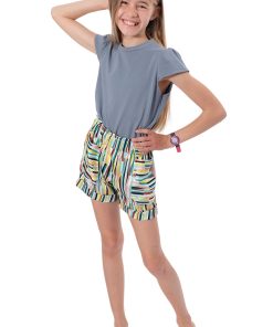 Mit oder ohne aufgesetzte Taschen, aus Jersey oder aus Baumwolle, dieses Modell im Paperbag Style schaut immer gut aus. Das Schnittmuster für die kurze Mädchenhose ist weit geschnitten und wird durch ein Gummiband im Bund eingehalten. Die Hose wird daher ohne Reißverschluss verarbeitet. Ein schönes Modell für alle motivierten Näherinnen. Auch aus Leder sieht diese Hose toll aus!