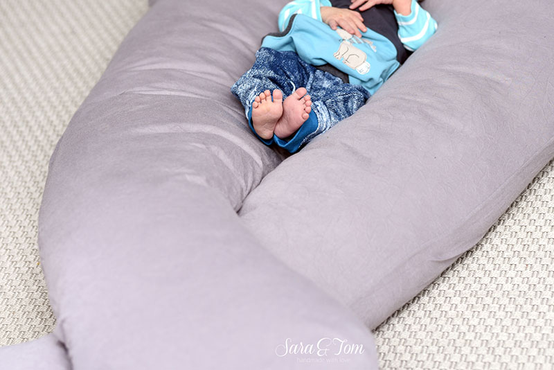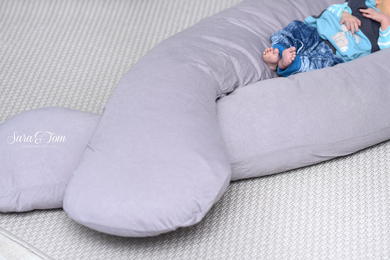 Dieses Kissen ist ein ganz besonderes Kissen, denn Du kannst es in der Schwangerschaft als Stütze verwenden, danach als Stillkissen und wenn alles vorbei ist dient es noch als Kuschelkissen. Das Kissen für die Hülle bekommst Du hier.