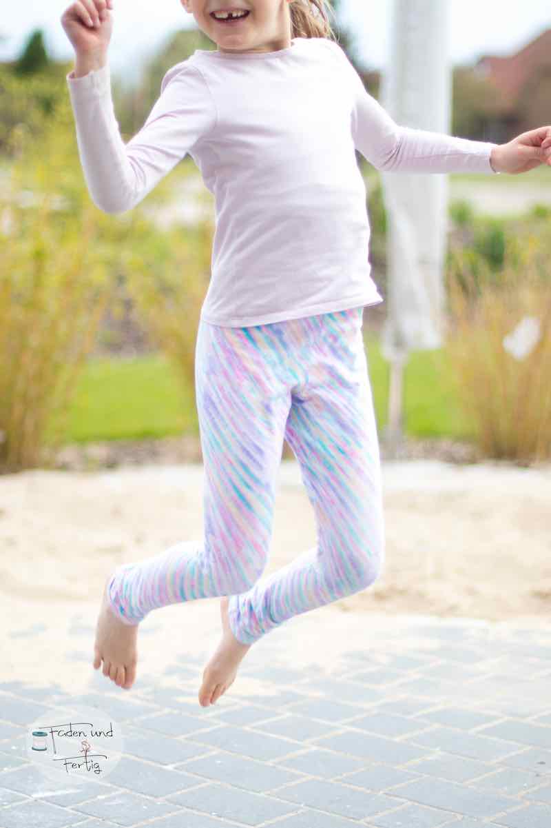 Du möchtest eine süße Legging für Dein Töchterchen nähen oder bist auf der Suche nach einer engen Turn- bzw Schlafanzughose für Deinen Sohnemann? Die Legging ist im Winter für alle auch ein toller Strumpfhosenersatz und nicht nur unter den Skianzügen tragbar. Diese Hose macht locker 2 Kleidergrößen mit und kann daher sehr lange getragen werden. (Für Jungs bitte lieber eine Nummer größer nähen,) Für den Sommer kannst Du die Länge einfach kürzen und eine 3/4 oder eine kurze Legging nähen. Es gibt zwei Varianten für diese Hose, mit Gummizug oder mit Bündchenstoff. Eine Alternative ist auch statt Bund ein Gummiband anzunähen, hier gibt es viele Gestaltungsmöglichkeiten!