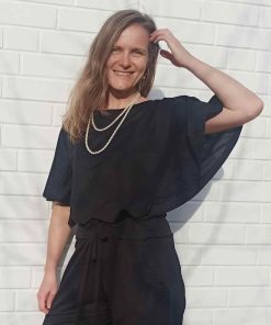 Leicht fallendes Mischgewebe, elastisch, Schwarz – Lino