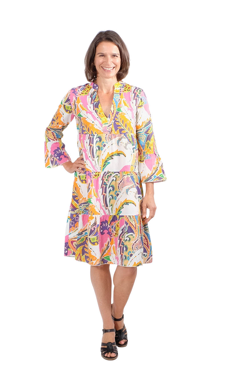 Dieser Viskosestoff ist leicht fallend und hat eine tolle Haptik. Diese Qualität ist pflegeleicht, knitterarm und bietet einen hohen Tragekomfort. Der Stoff eignet sie sich toll für leichte Sommerhosen, Tunikas, Hemden, Kleider, Röcke und vieles mehr. Abbildung diverser Schnittmuster wie Kleid Francesca und weitere zur Inspiration.