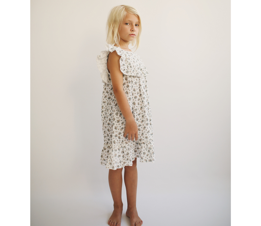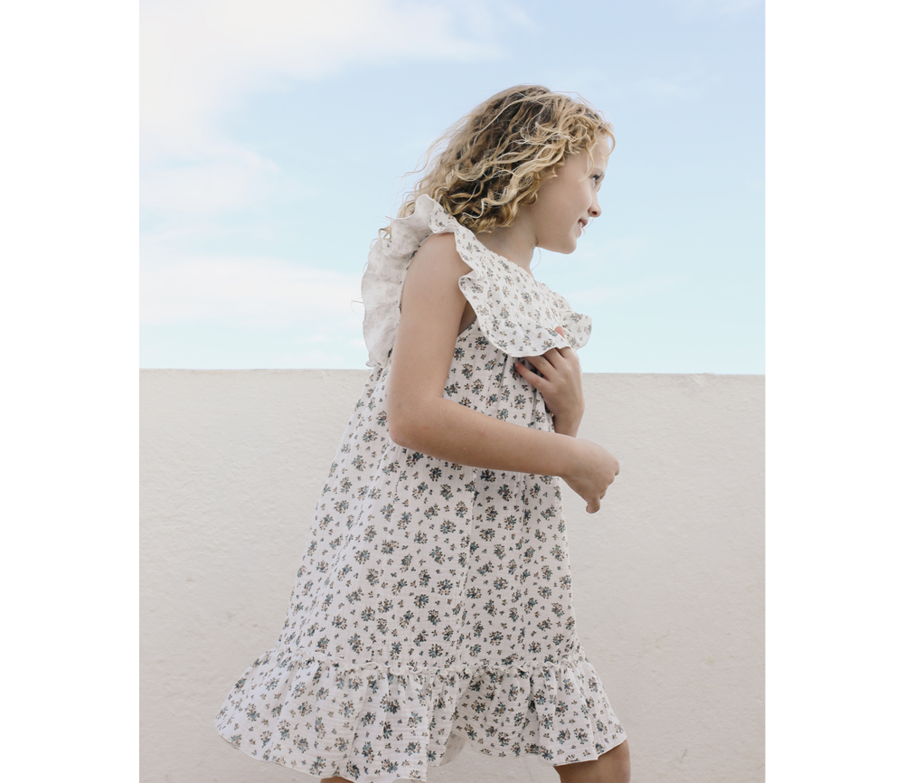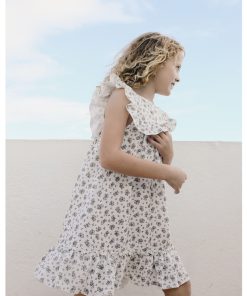 - Das Kleid Lina White Flowers ist ein Klassiker von Liilu für den Sommer, lockerer Passform, kurzen Ärmeln und wunderschönen Volant-Details. Auf der Rückseite sind Fischgrätenbänder zum Binden aufgenäht.