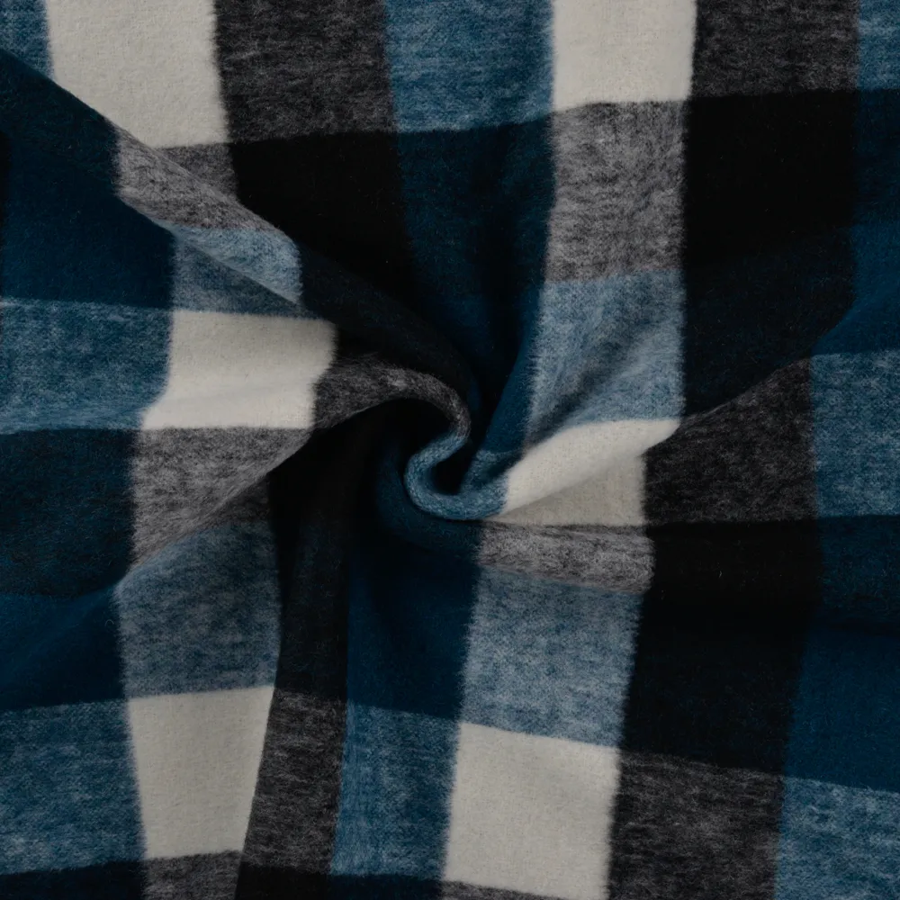 Mantelflausch, Wollstoff, Karo, Ecru / Grau / Petrol