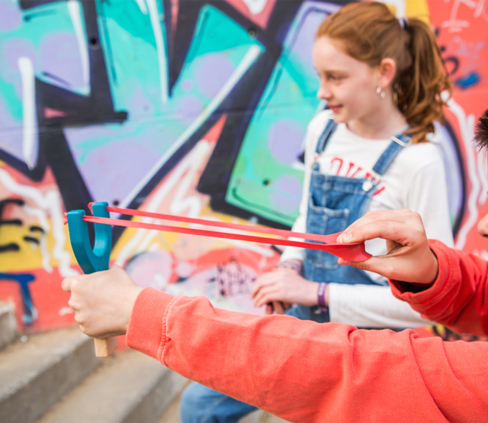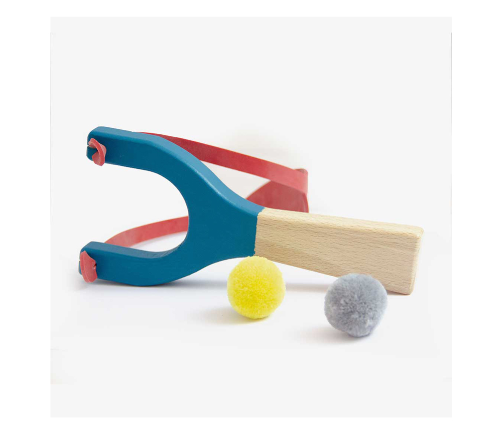 Wer kennt nicht dieses Spiel aus seiner Kindheit? Die handgemachte Holzschleuder trainiert die Treffsicherheit, macht Spaß und durch die weichen PomPom Bälle ist keine Verletzungsgefahr vorhanden.