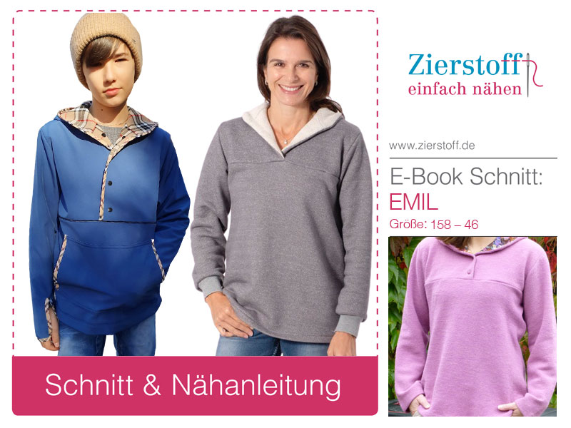 Nähanleitung & Schnitt für den Pullover / Schlupfpulli “EMIL”, Gr. 158 – Damengr. 46