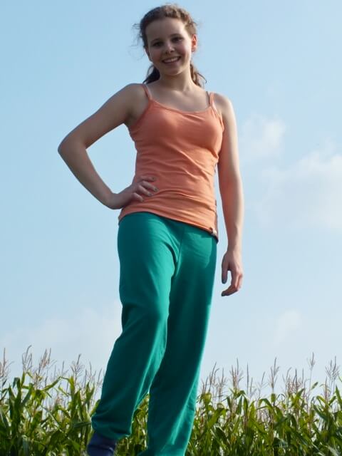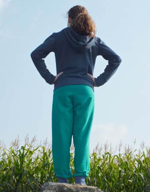 Diese Hose beinhaltet 2 Styles und bietet damit viele Kombinationsmöglichkeiten. Ob mit Bündchenabschluss oben und unten, oder als weitere Hose mit geradem Bein und Gummizug oben, alles ist hier machbar. Du kannst damit viele Looks kreieren. Das Nähen geht sehr schnell und einfach und ist auch für blutige Nähanfängerinnen gut machbar.