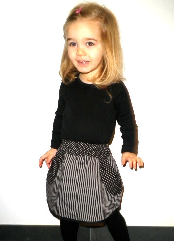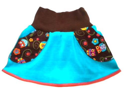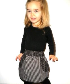 Du möchtest einen super einfachen Rock für Dein Töchterchen zaubern? Ob in Baumwolle, Jersey oder Jeans, der Rock sieht einfach toll aus und ist für alle Jahreszeiten geeignet. Im Schnitt sind zwei Varianten enthalten. Eine an der Seite abgerundete Version und eine gerade Version. Du kannst an beide Varianten entweder ein Strickbündchen oder einen Bund aus Stoff mit Gummiband annähen. Es ist zudem eine separate Anleitung mit dabei, wie Du die aufgesetzte Tasche mit einem Paspel verzieren kannst.
