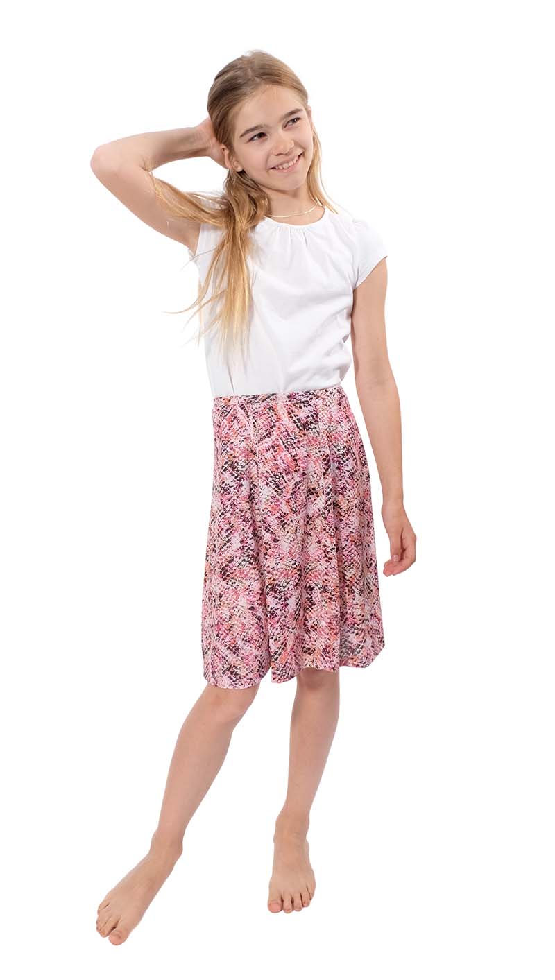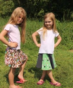Du möchtest einen Rock für Dein Töchterchen selber nähen? Das Tolle an diesem Schnitt ist, dass Du den Rock auf unterschiedliche Arten nähen kannst. Variante 1: Aus unelastischen Stoffen mit Beleg/ Futter und einem Reißverschluss. Variante 2: Aus dehnbaren Stoffen wie Jersey und ohne Reißverschluss. Somit ist der Rock auch ganz einfach für Anfänger zu realisieren. Beide Variationen können in kurz oder lang genäht werden. Der Schnitt ist vielseitig und durch die richtige Stoffwahl ist er auch das ganze Jahr über tragbar.