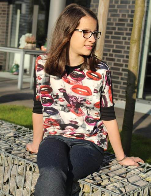Den Style mit Fledermausärmeln kannst Du auf unterschiedliche Arten nähen Mit langem Arm oder für den Sommer mit kurzen Ärmeln, mit oder ohne Bündchen Wenn dein Kind zwischen zwei Größen steckt werden beide Größen passen. Dadurch kann das Teil auch sehr lange getragen werden. Anfangs wird es länger getragen, am Ende dann kürzer. Dieses Shirt sieht nicht nur cool aus, es ist auch ganz einfach genäht, ein tolles Projekt für Anfänger, traut Euch da ruhig ran.