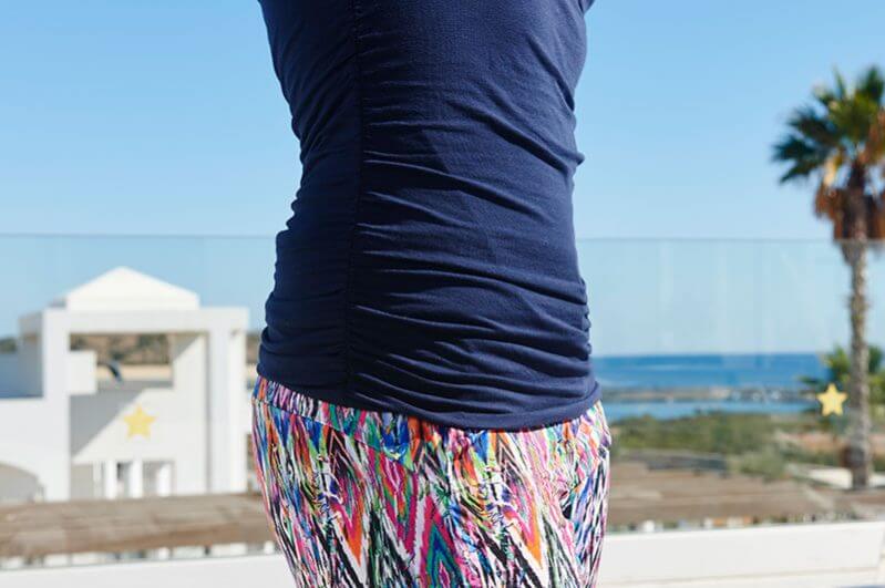 Materialempfehlung: Dehnbare Stoffe wie Baumwolle oder Viskosejersey.