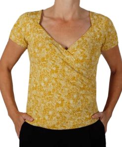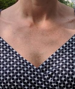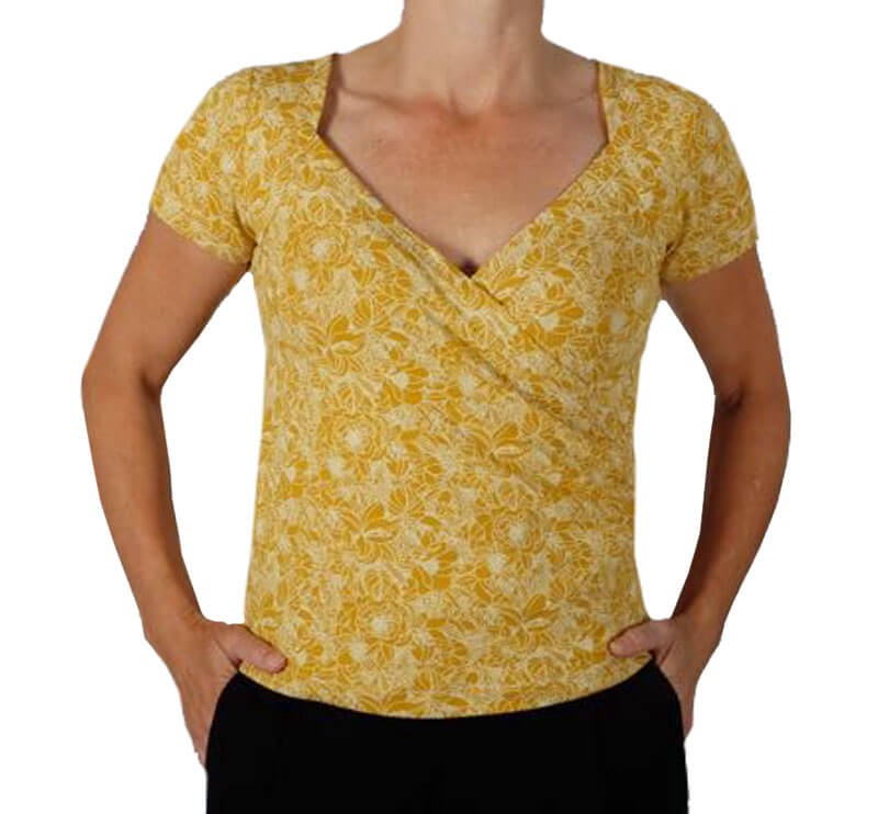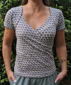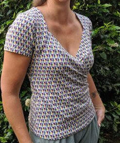 Dieses tolle Wickelshirt ist ein echter Hingucker! Durch die rund geformten Schulterpassen und den Falten im Vorderteil zaubert es Dir ein tolles Dekolleté! Du solltest schon ein wenig Näherfahrung für dieses Shirt haben, aber wenn Du das ein oder andere Shirt schon genäht hast sollte es kein Problem sein. Die Schritte sind im Ebook sehr ausführlich bebildert und erklärt. Für blutige Nähanfängerinnen empfehlen wir unser Wickelshirt Marietta. Der Rock Melitta sieht sehr hübsch zu diesem Shirt aus.