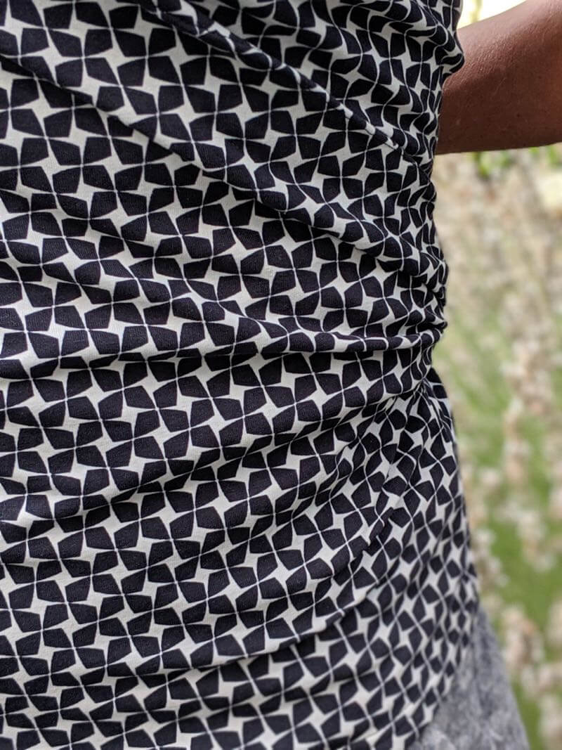 Materialempfehlung: Wir empfehlen dehnbare Baumwoll-Jerseystoffe. Viskosestoffe sind nicht zu empfehlen, da sie zu weich sind!