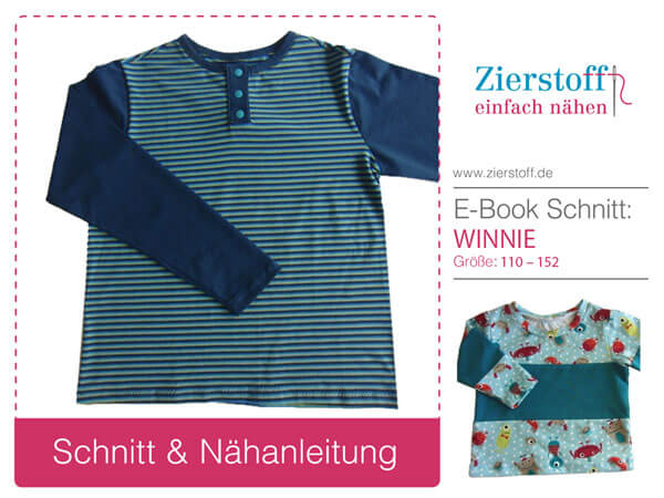Nähanleitung & Schnitt für ein Shirt mit Teilungsnähten oder ohne und mit Knopfleiste – “WINNIE”, Gr. 110 – 152