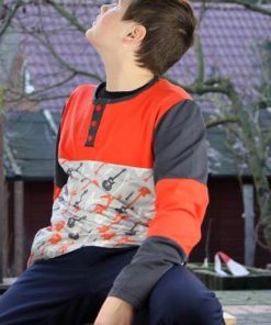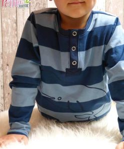 Dieser Schnitt ist nur für Fortgeschrittene zu empfehlen. Das Shirt kann als Langarm oder als Kurzarm Shirt genäht werden, mit oder ohne Teilungsnähte. Auch hier kannst Du sehr kreativ damit umgehen. Es st z.B. auch möglich nur vorne oder den Arm aus verschiedenen Stoffen zu nähen und andere Teile wiederum aus unifarbenen Stoffen zuzuschneiden. Der Schnitt ist leger weit geschnitten und für alle Kinder geeignet.