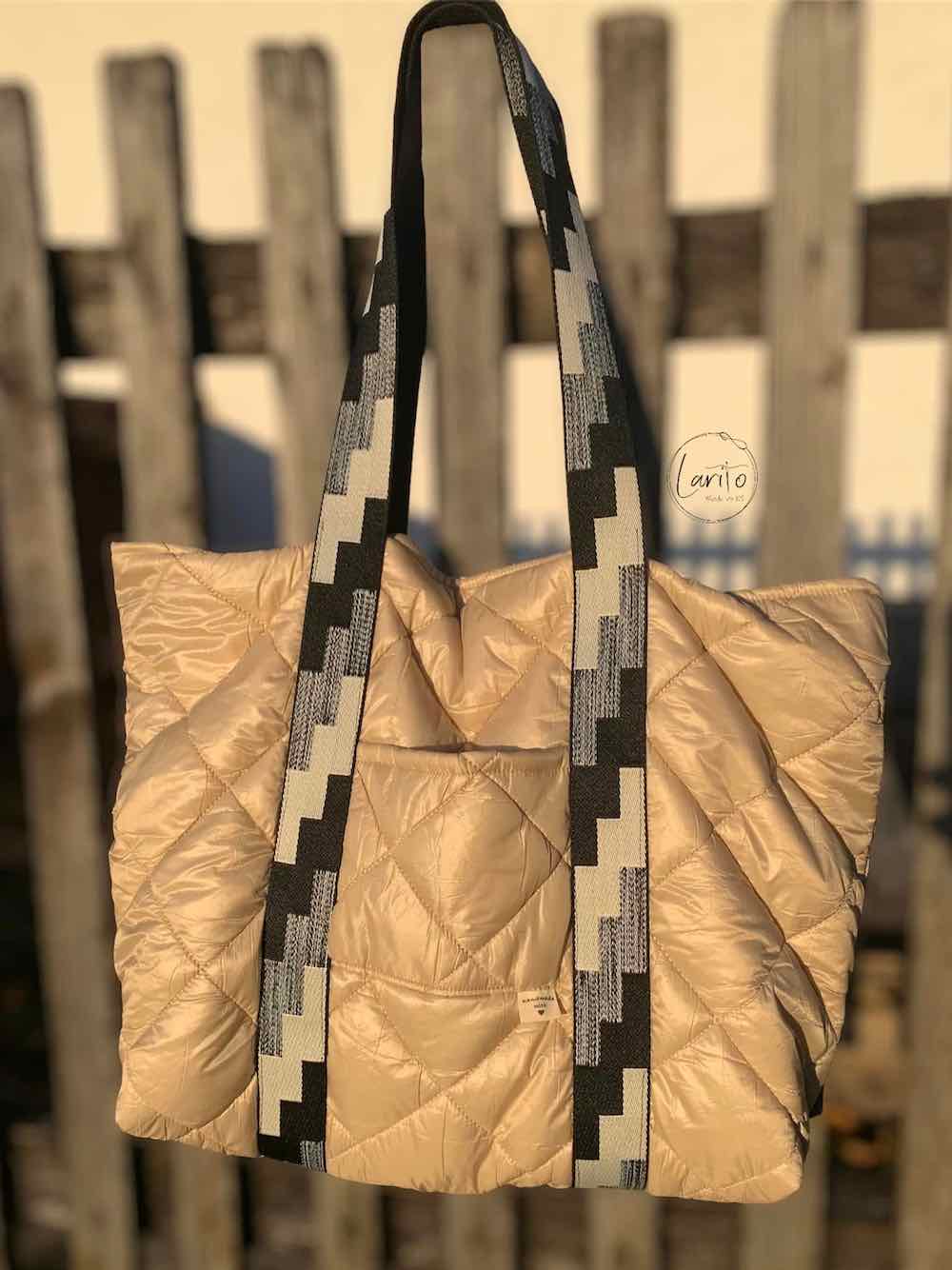 Dies schöne Tasche aus Softshell oder aus Stepp Stoffen ist ein Hingucker. Spiele mit verschiedenen Stoffen und nähe dein Unikat. In diesem Schnitt ist eine Größe beinhaltet.