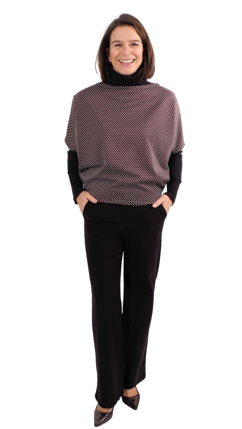Wir lieben dieses Teil, weil es so einfach genäht ist und darüber hinaus auch noch vielseitig kombiniert werden kann. Ob über ein T-Shirt oder ein Kleid gezogen, ein idealer Begleiter für unterwegs. Wir haben auf die Uhr geschaut, genäht ist das Teil in 10 Minuten! Wir sind uns sicher, dass es nicht nur bei einem Teil bleiben wird..-)) Du kannst das Teil mit Beleg oder mit Rollkragen vernähen, den Fadenlauf quer oder längs einlegen, ein Schnittmuster mit vielen Möglichkeiten.
