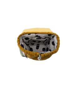 - schließt mit einem Kordelzug und einer Klappe oben