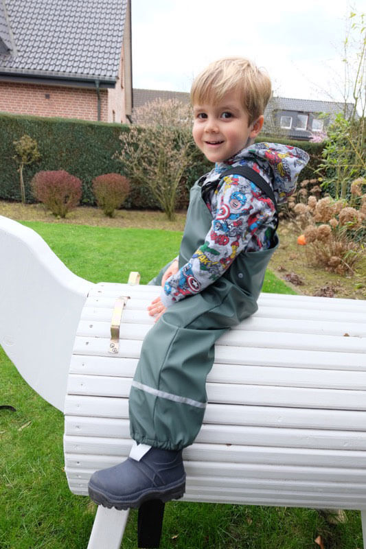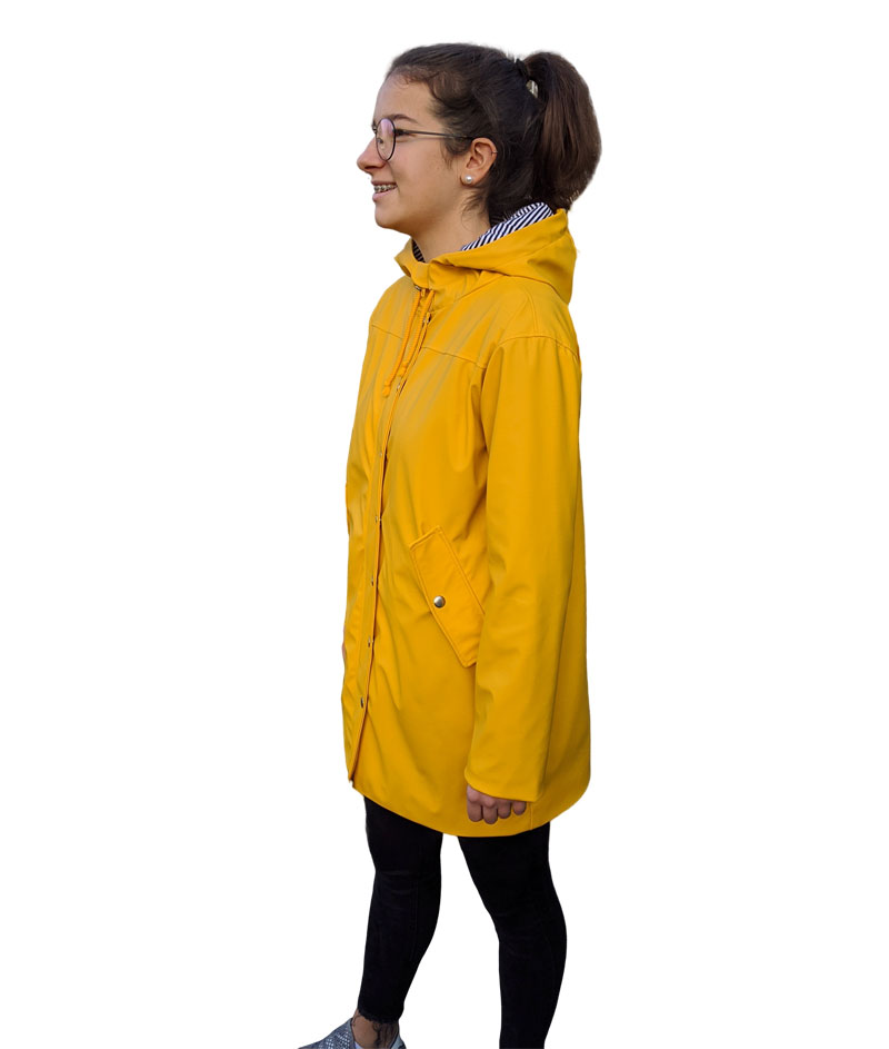 Mit diesem wasserabweisenden Stoff zauberst Du ausgefallene Regenbekleidung. Deiner Kreativität sind keine Grenzen gesetzt. Gut geeignet für Regenjacken oder -mäntel, Hosen, Hüte und vieles mehr. Abbildung Regenhose Kai, Regenhut Helge und Jacke Johanna in einer anderen Farbe.
