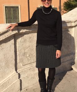Ein sehr hochwertiger Jacquard Stretch. Das Material eignet sich für Westen, Kleider, Röcke, Hosen und vieles mehr. Die linke Warenseite kann auch als rechte Warenseite verwendet werden. Abbildung Schnittmuster Kleid Mareike. Hose Tela, Damenrock Gina und Nevia, Kleid Jessica und Blazer Keno in gleicher Qualität und ähnlicher Musterung. Als Glencheck wird ein traditionelles Karomuster bezeichnet, das seinen Ursprung in den schottischen Highlands hat.