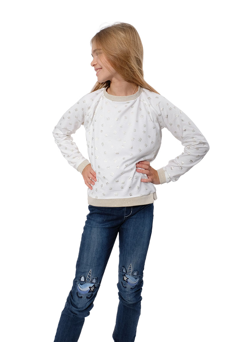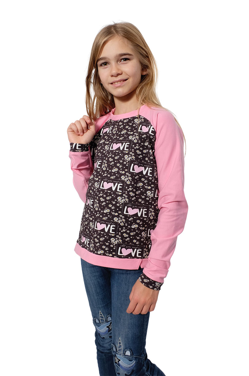 Ein wunderschönes und unkompliziertes Sweatshirt mit Raglan Ärmeln und nach vorne gelegter Seitennaht. Das Bündchen wird hier einmal etwas anders verarbeitet und gibt dem Teil das gewisse Etwas. Das Modell ist auch für Anfänger gut geeignet. Du kannst das Shirt aus 2 verschiedenen Stoffen oder aus einem nähen, hier kannst Du so richtig kreativ werden. Der Schnitt ist einfach und sehr schnell genäht.