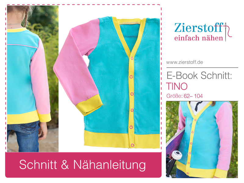 Nähanleitung & Schnitt für eine Sweatshirtjacke / Jacke “TINO”, Gr. 62 – 104